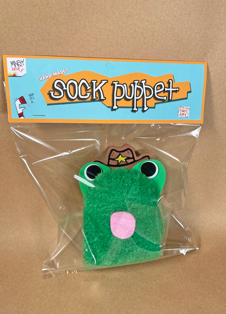 Your Yeehaw the Frog is individually hand-made and cloned in Brooklyn, NY, by Marty Allen, the author of Sock Puppet Madness and creator of The Sock Puppet Portraits!